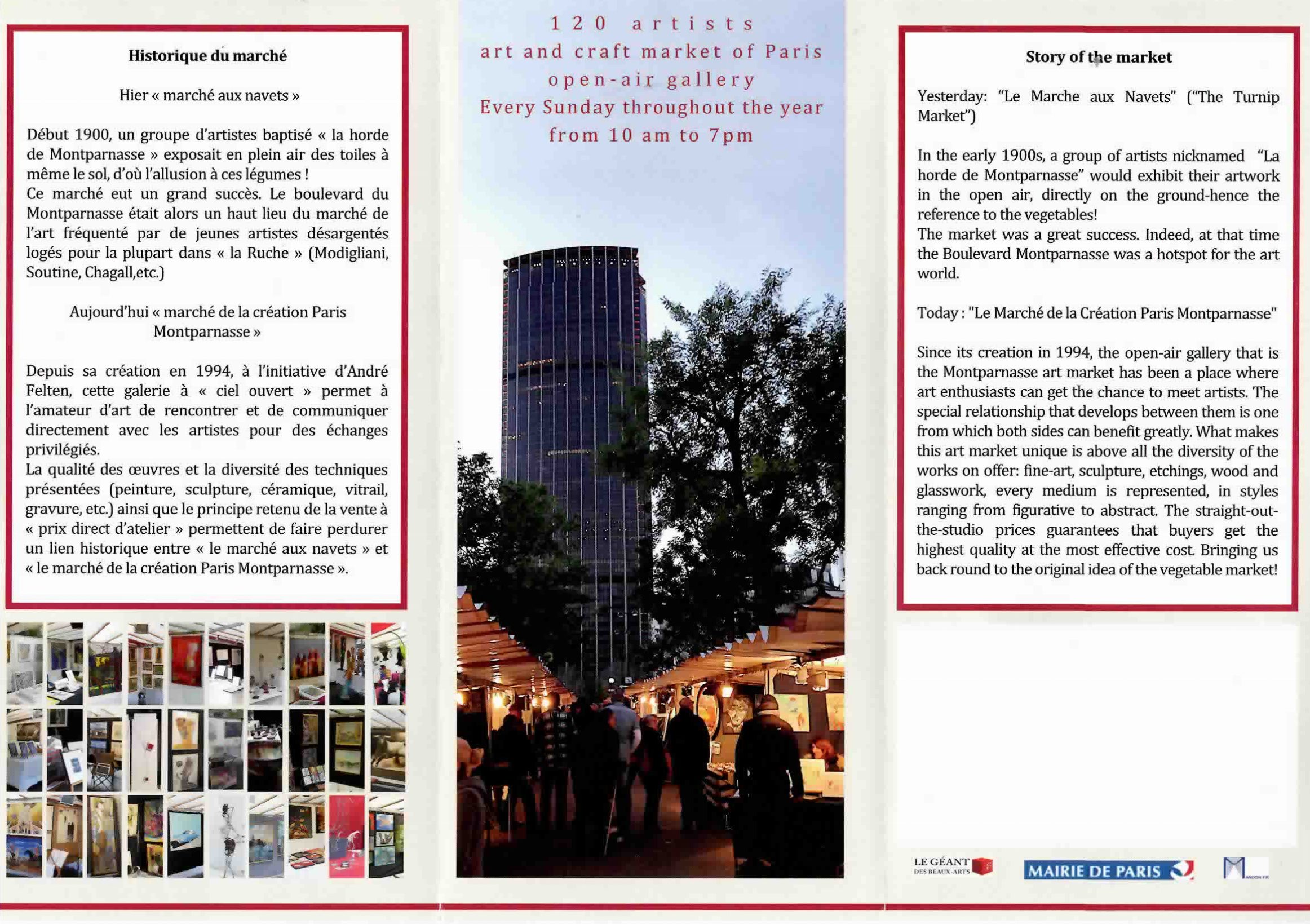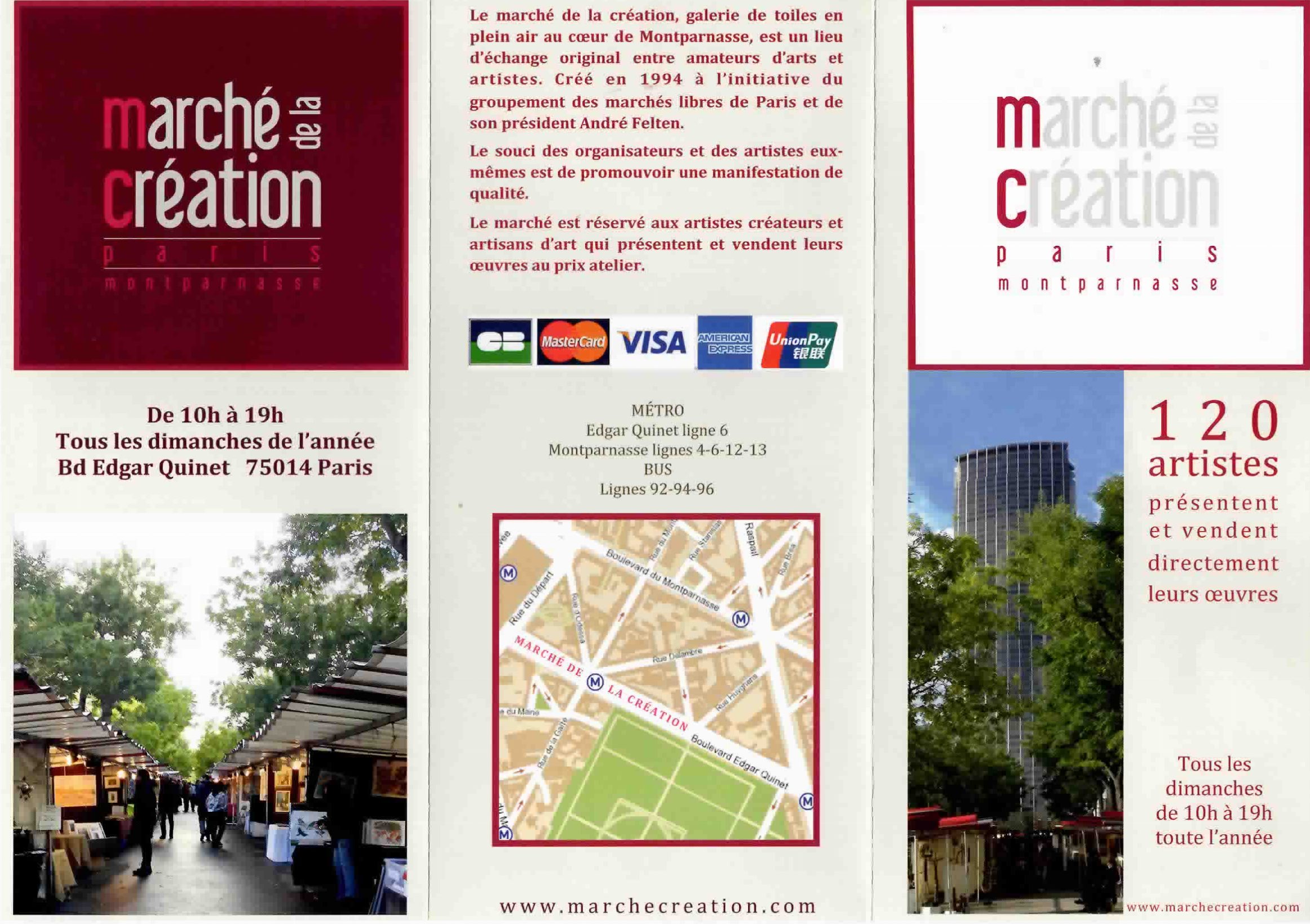 Depuis sa création en 1994, le marché de la création est comparable à une grande galerie d’art exposant toutes les diversités artistiques : peintures, gravures, sculptures, céramiques, … Cette galerie à « ciel ouvert » permet à l’amateur d’art de rencontrer et de communiquer directement avec les artistes pour des échanges privilégiés.